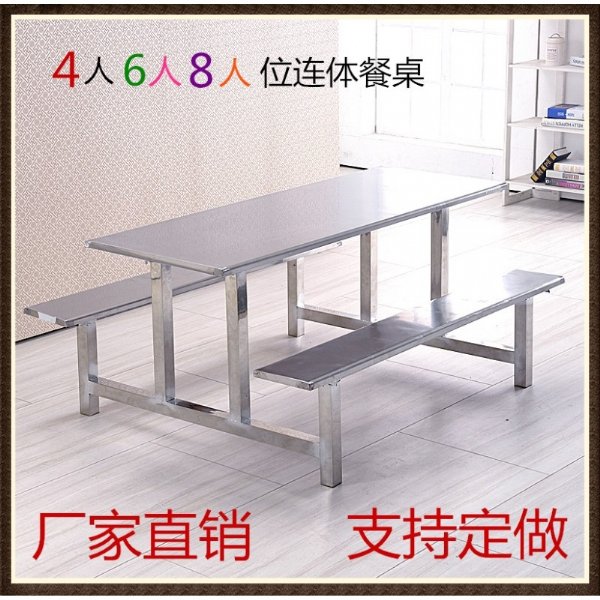 餐桌面,选用不锈钢制作桌面,整洁卫生,耐腐蚀不生锈,坚固赖用。 餐桌架50*50不锈钢管1.2厚,连接部..