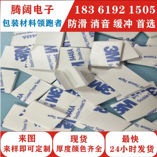 EVA泡棉是塑料粒子发泡过的材料,简称泡棉。EVA泡棉垫具有有弹性、重量轻、快速压敏固定、使用方便、弯曲自如、体积超薄、性能可靠等一系列特点。3M泡棉胶垫是以EVA泡棉为基材,单面或者双面贴合3M双面胶(型号按客户*),后模切冲压而成。有各种厚度、密度和颜色选择。