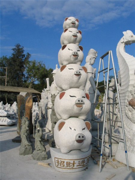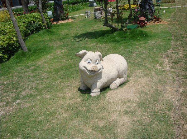 憨态的石雕猪,青青的野草,表达了生命的生生不息.所以石雕猪也深受人们的喜爱。 - 惠安县龙创石雕工艺有限公司