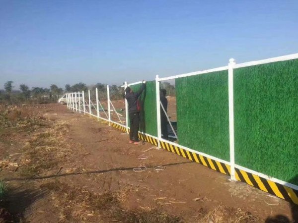 围挡基脚采用M10水泥砂浆砌筑MU10页岩砖砖砌0.5*0.5的基础,用于增强围挡抗风稳定性;PVC围挡设2.5米高,宽3米为一板。施工围挡做美化处理,喷涂企业名称、安全、质量、文明施工用语及开发项目商业广告,严禁张贴、涂写垃圾广告。围挡施工完毕,板与板之间衔接平顺,直线要在一条直线上;板与板不得留有缝隙,即在场外不能看见场内施工。围挡沿线设置红灯或者隔段用安全反光锥用于夜间警示。