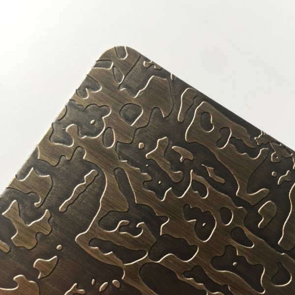 青古铜拉丝板是不锈钢拉丝板的一种,在不锈钢蚀刻板的基础上水镀青古铜的颜色,让一张普通的不锈钢拉丝板有了生命力。在公元前青铜器的时代的时候,那种颜色代表权利,辉煌,光荣的象征,在发展迅速的今天我们用不锈钢钢材料顺利的复古放青铜器那就是青古铜蚀刻板,不锈钢青古铜蚀刻板将青铜文明与现代科技结合,重现华夏民族青铜文化之瑰丽风采。不锈钢青古铜蚀刻板是先将然后表面拉丝,再蚀刻,在水镀不锈钢板镀枪黑色,再罩漆制造而成。不锈钢青古铜板古色古香,典雅大气,能够烘托出高雅脱俗的环境气氛,适合各种装饰工程及工艺品取材。