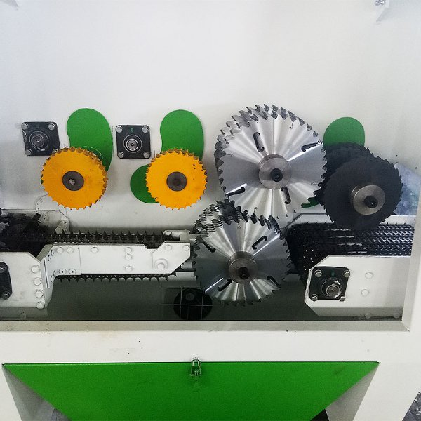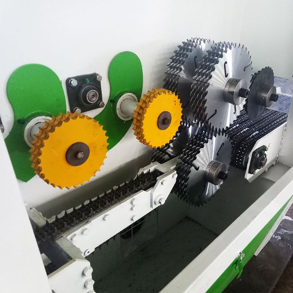 7、全程自动送料,上下轴结构,多片锯切,连续出料,比带锯的效率提高5-6倍,且锯路相比其他机器更薄。