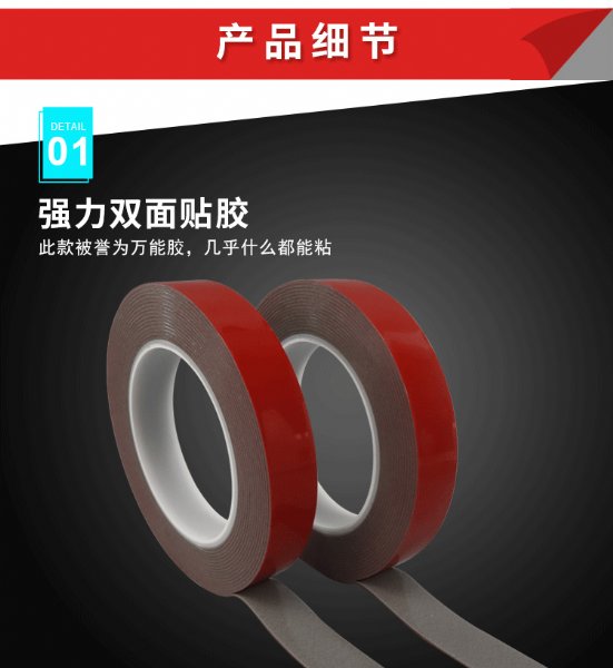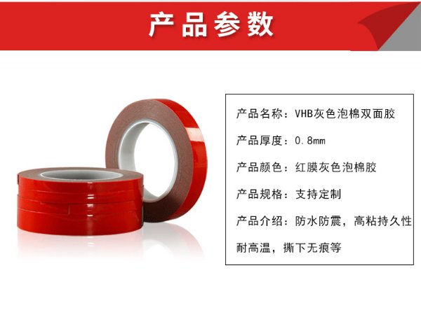 。亚克力泡棉双面胶具有粘着力强、保持力佳、防水性能好、耐温性强、持久性强,防紫外线能力强的特性。