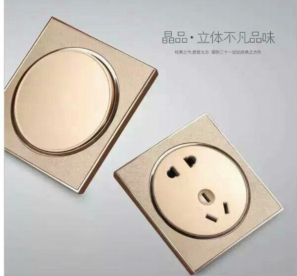1、开关边框:(锌合金)金色 2、开关面板:黑色亚克力面板 3、开关尺寸:86型 4、开关功能:..