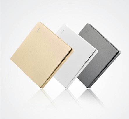 2. 开关表面按钮采用圆弧设计,按钮上部加金黄色,增加美感,高贵典雅之设计。