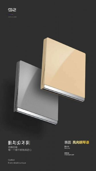 材 质:PC、铝拉丝,亚克力,玻璃 颜 色:黑色、咖啡色、香槟金、玫瑰金、宝马金。 开关类别:铝框架金属..