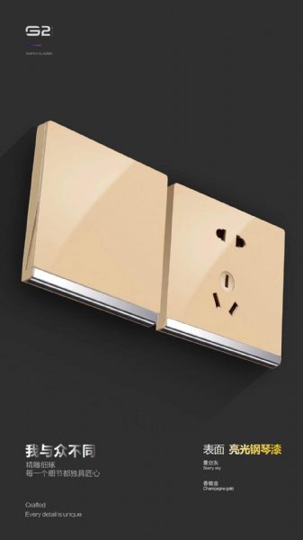 1、开关边框:(锌合金)金色 2、开关面板:黑色亚克力面板 3、开关尺寸:86型 4、开关功能:..