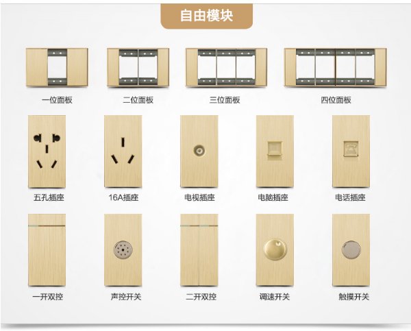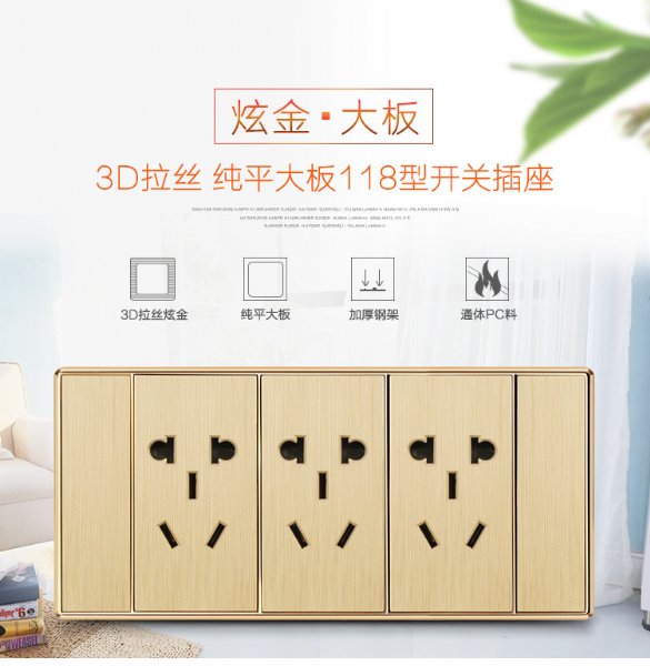 1、开关边框:(锌合金)金色 2、开关面板:黑色亚克力面板 3、开关尺寸:86型 4、开关功能:..
