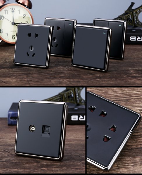 1.黑色墙壁开关面板结合现代时尚潮流,采用大圆弧设计、产品外观简洁大方,面板一周采用钳入银边装饰,款式新颖、外型美观。