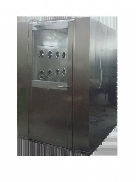 不锈钢货淋室是货物进入洁净室所的通道,它利用的洁净气流吹落并进入洁净室人身服装或物料表面上附着尘埃粒子。进出风淋室的门是不能同时开启的,可以兼起气阀作用,外部空气进入洁净室,并使洁净室维持正压状态;货淋室经过滤器过滤后的洁净气流由可旋转喷嘴从各个方向至货物、人体上,而尘埃粒子,再由初、过滤器过滤后重新循环到风淋区域内。货淋室一般采用无底盘及门槛配置,为货车进出提供方便。