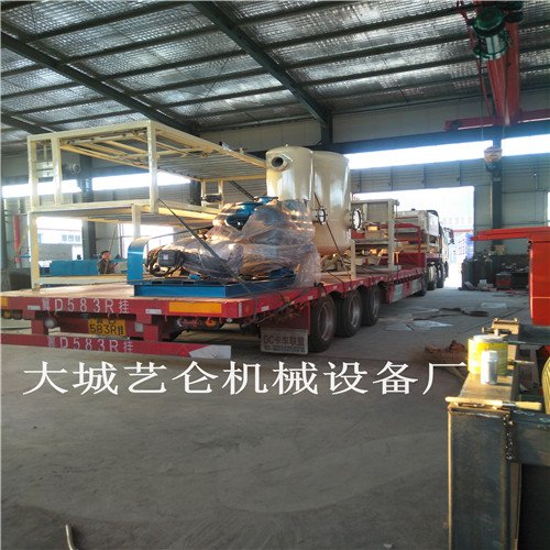 精准、运稳定、质量可靠、高产高效、操作简便,主要系统主机,真空泵,真空罐,搅拌罐构成,其主机的构造为皮带滚轮两端各一个,主要作用传输,皮带一套注皮带上有专业人员通过精心设计的圆孔,圆孔的作用是有效的通过皮带下方的吸料盒进行对聚苯板的吸附渗透,主机的两侧都附有挡板,其作用是防止聚苯板在传送的过程中跑偏,也具备防火材料的流出。搅拌罐加水,将防火材料按配比分别传送至搅拌罐内,进行均匀搅拌。聚合聚苯板通过上料系统开始上料,搅拌罐内以拌好的材料通过高强泥浆泵输送至吸附平台上方的放料罐里,在由罐底匀速放料装置均匀喷洒在以传送至吸附平台上的板材之上,这时高强真空压力泵也在同时进行吸附工作,确保防火材料通过聚合聚苯板材的缝隙均匀吸入板材内,使板材达到均匀防火包裹的目的。吸附好的板材在经过出料系统,进行晾晒码垛和包装,一体化程序便可