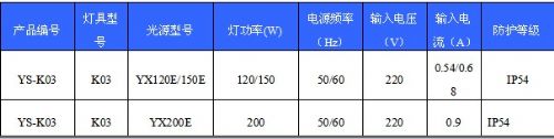 ※注:表中所列为常规色温产品,如需其它色温(2700K-6500K)产品可按顾客要求生产。