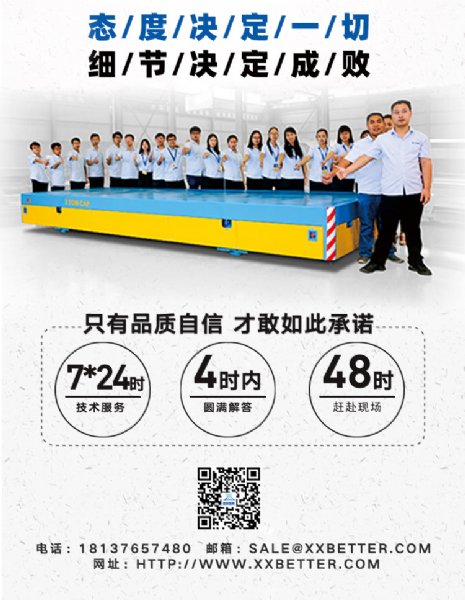 主营业务:车间过跨车、无轨电动平车、钢包车、蓄电池轨道电动平车、