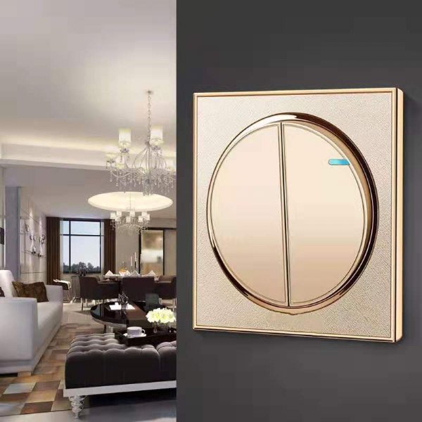 1、开关边框:(锌合金)金色 2、开关面板:黑色亚克力面板 3、开关尺寸:86型 4、开关功能:..