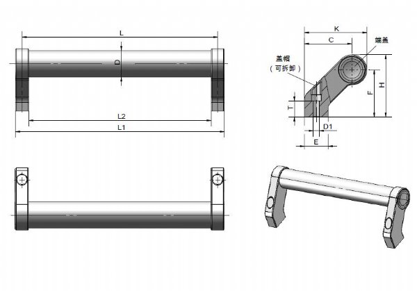 TANJA L15 聚酰胺盖帽机床设备把手 铝合金自动化设备拉手 机械把手