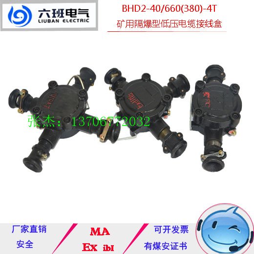 六班电气BHD2系列矿用隔爆型低压电缆接线盒(以下简称接线盒)主要由隔爆外壳(壳体、盖)、绝缘接线座、电缆引入装置及内外接地装置等组成;