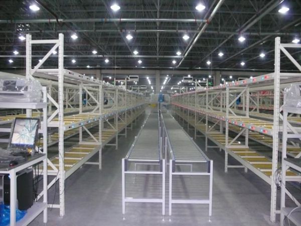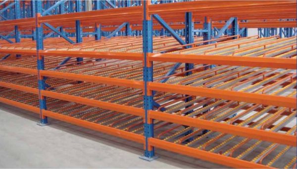 1.又称滑移式货架,是由立柱组,前后梁,流利条等组成,通过滚道将货物从配货端输送到取货端,货物借助重力自动下滑,可实现“先进先出”作业,使用成本低存储速度快、密度大。货架每层前后横梁之间设置滚轮式镀锌或铝合金流利条,按一定坡度放置。货物通常为纸箱或将货物放于塑料周转箱内,利用其自重实现货物的流动和先进先出,货物由小车进行运送,人工存取,存取方便,单元货架每层载重量通常在1000KG左右,货架高度在2.5米以内。适于装配线两侧的工序转换、配送中心的拣选作业等场所,可配以电子标签实现货物的信息化管理。