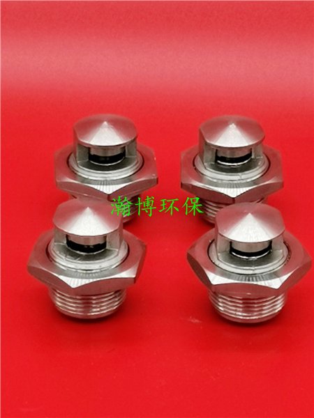 产品特点:喷口有异物阻塞时,喷嘴内部会自动增大压力,促使口径放大,自动排出异物后,喷嘴口自动恢复正常喷雾状态。喷嘴轴心与喷雾轴心设计一至,便于数个喷嘴位置安装。