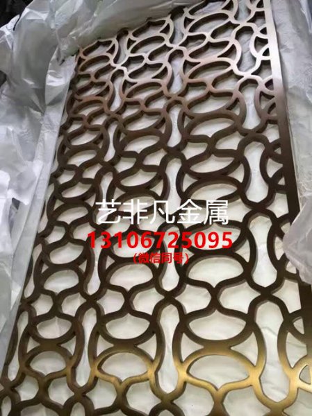 佛山艺非凡金属制品有限公司是一家集技术,研发,制造,安装施工为一体、专业生产建筑装饰五金的企业。我们专注于设计研发国内五星级酒店、高端商业场所、别墅、*会所等场所的高端不锈钢装饰工程,积累了丰富的经验,主营产品包括:不锈钢屏风,不锈钢装饰隔断,不锈钢酒柜、不锈钢酒架,铝板屏风,铝板护栏,铝板雕花设计,铝板浮雕。