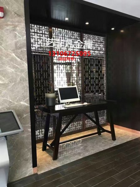 高端办公室办公区 新中式轻奢 不锈钢雕花屏风花格 来图定制