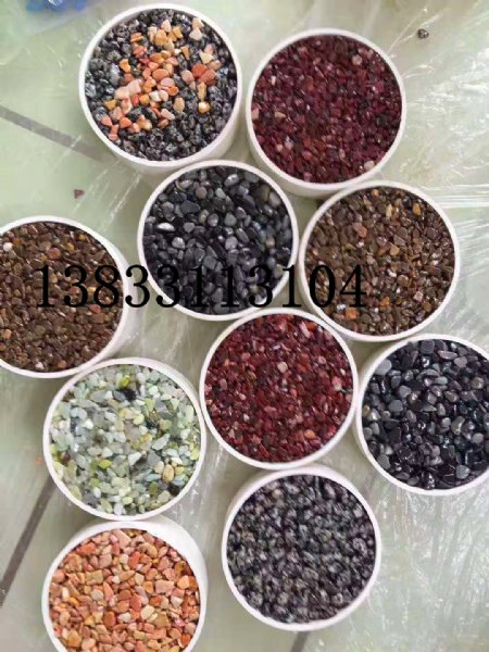 石家庄灵寿县永顺矿产品加工厂是专门生产水洗石的大型厂家 我厂主要生产黄色 红色 白色 黑色 三花 灰色等颜色水洗石 石米 五彩石子 我厂生产的彩色石子是我彩石破碎 水洗而成的 规格有1-3 3-5 5-8 8-12 12-20 20-30 30-50毫米 水洗石由于其原材料有各种各样的颜色、形状,可以装饰出各种形状和设计的图案,被广泛应用于室内装饰和室外景观造型,有些大面积外墙面装修也采用水洗石,透出自然纯朴的感觉。园林景观上多用水洗石工艺.