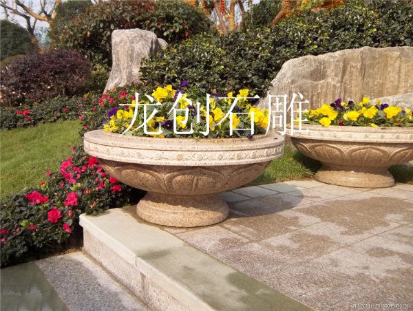 石雕花盆是一种实用的雕塑品,它不仅造型新颖独特美观秀丽,而且坚固耐用、绿色环保。。近年来,在一些广场、公园、旅游景点、园林等地都会去见到各种各样的石雕花盆,石雕花盆被广泛的应用在园林的景观建设当中,甚至在小区中也是常见的。主要的应用在园林绿化、景观绿化、私家园林、小区绿化。石雕花盆不仅可以去用在公共的场所,在家中也可以去摆放一个小型的石雕花盆,去搭配上不同颜色的花,更是美不胜收,不仅耐用,而且外形大气美观。