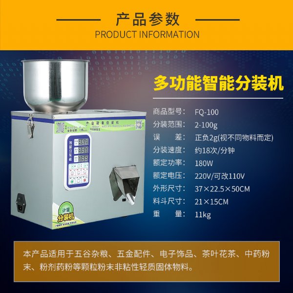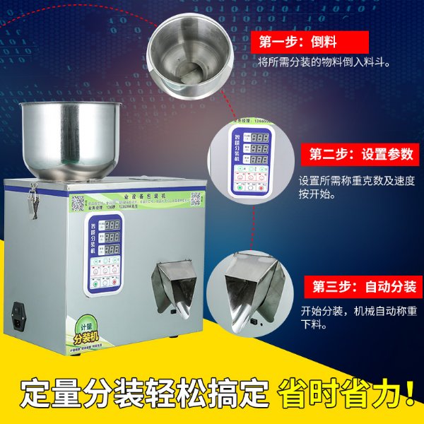 中小型多功能智能分装机,适用于各类食品、药材、果干、茶叶、杂粮、各颗粒物等产品分装;全智能系统控制,操作简单,强力震动下料;适合各专业合作社、个体种植户等使用。专业机械20年,研发售后一体式,品质有保证。欢迎来电咨询。