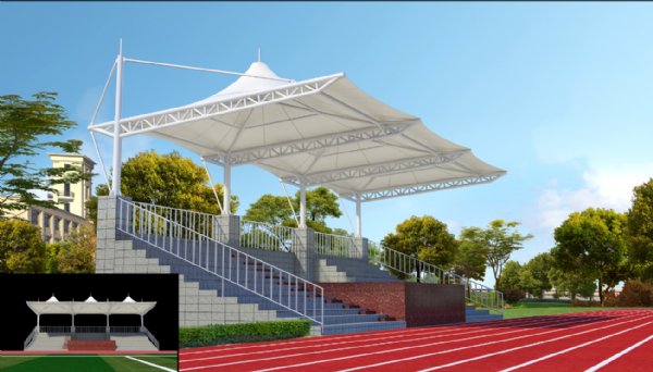 - 膜结构看台 体育场看台棚 学校操场遮阳棚工程 遮阳避雨