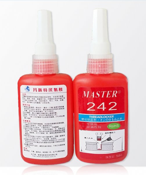 242厌氧胶是通用型,中强度,触变性粘度,适用于M6~M20螺纹的锁固与密封。