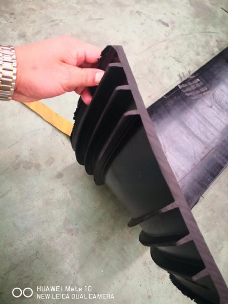 在施工中,在混凝土浇筑过程中,把橡胶止水带部分或全部浇埋在混凝土中,如果混凝土中有许多尖角的石子和税利的钢筋头,由于橡胶的撕裂强度比拉伸强度低3-5倍,因此一旦被刺破或者撕裂时,不需很大外力裂口就会扩大,所以在止水带定位和混凝土浇捣过程中,应注意定位方法和浇捣压力 ,以免止水带被刺破,从而影响止水带的防水效果。