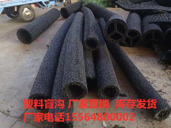 塑料盲沟是由改性聚丙烯的乱丝热熔后相互搭接而成的框架结构,外包裹一层土工布。经土工布过滤成清水进入塑料盲沟内,排放出去。透水管的断面可以根据工程的需要做成各种形状,主要为长方形的圆形。