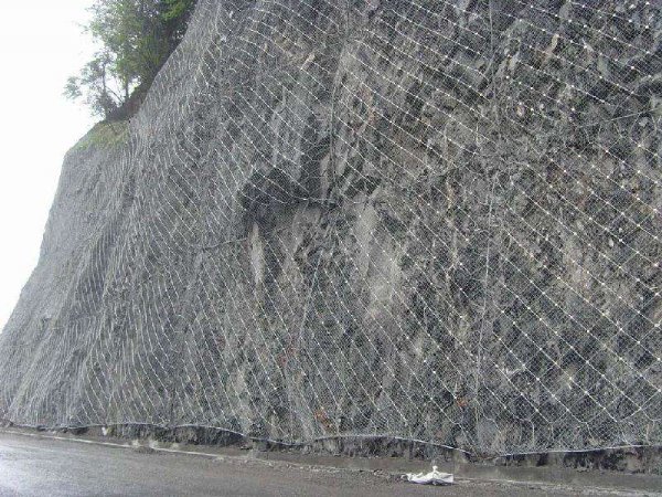 一般主动防护网产品是较为常用的防护网类型,它主要以加固边坡落石为主;通过将系统锚杆打入所需防护的山体当中,来固定钢丝绳网覆盖包裹在山体表面,以达到防止山体风化剥落和加固岩面的目的。