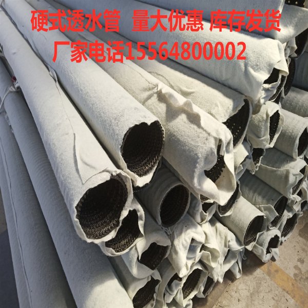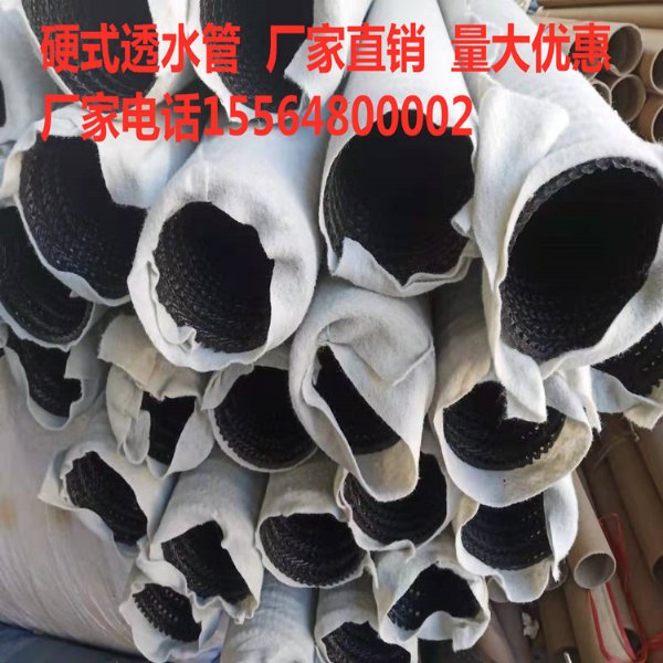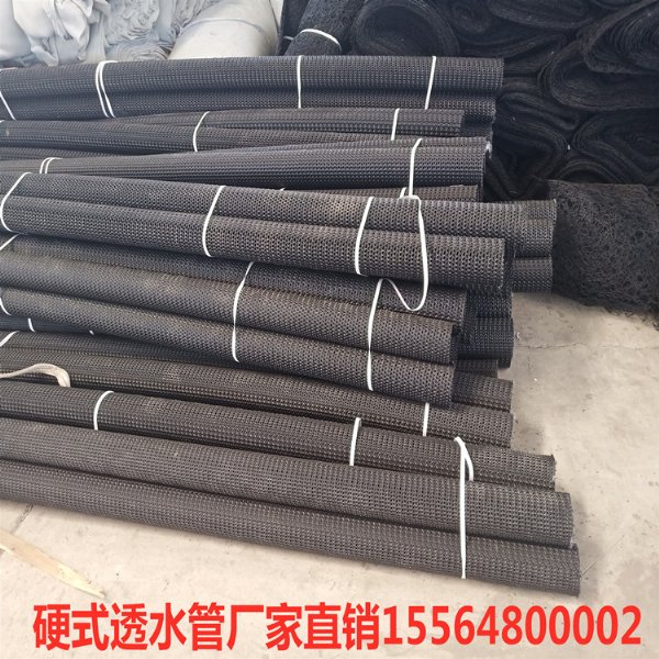 硬式透水管(又名:塑料盲沟、疏水管、曲纹网状透水管),硬式透水管上半部分2/3带有小孔,下半部分1/3为不带孔,能防止地下水发生二次渗漏,迅速把地下水排走。