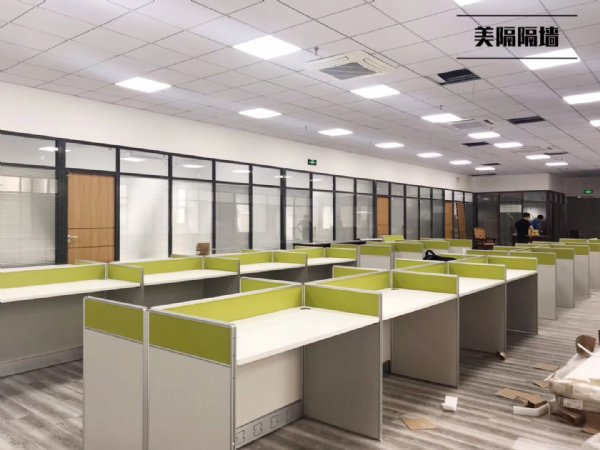 美隔工厂专业生产办公室玻璃隔断,单玻,双玻,双玻百叶帘主流市场*玻璃隔断产品。工厂质量价格都在优势市场上能合作到代理商,批发商,采购商,装修公司等!工厂一手货源从模具生产出来配件来组合铝合金铝材做为玻璃隔断的框架!单玻配置:10-12厘钢化玻璃,双玻配置:5+5.6+6厘钢化玻璃,型材主龙骨:1.2-2.5MM,型材宽度为:8.3公分,踢脚线为:45MM!欢迎过来参观美隔工厂产品!