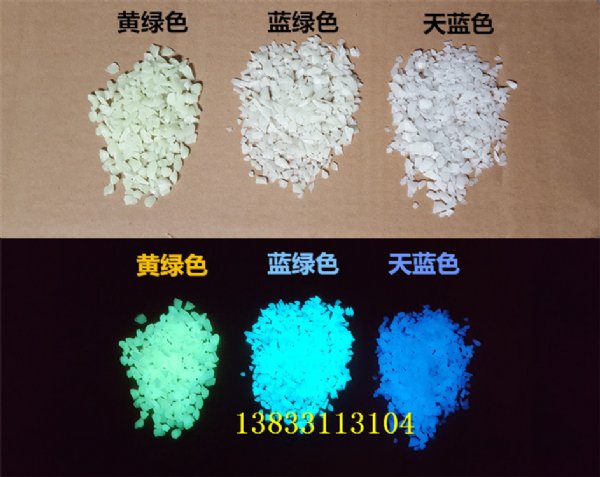 白天吸收各种可见光10~20分钟后,即可在夜暗处持续发光12小时以上,其发光亮度和持续时间是传统ZnS夜光材料的30~50倍,并可无限次循环使用,无放射性,对人体*无害。