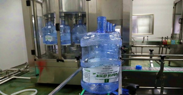 桶装水生产线 小型水桶被人工放置在输送带开端,通过PLC系统控制涡轮减速自动把水桶运送到全自动把盖刷桶机处,输送静止,全自动把盖刷桶机感应到有桶进来,上方把盖头迅速把下方的桶盖拔下,瓶盖被丢到设置好的位置,可进行集体消毒后再利用率,降低成本。瓶盖后,内外毛刷在进行全方位的刷洗,本设备采用不损坏瓶口刷洗方位,保证清洗干净不造成瓶口损坏,清洗完毕后输送启动,瓶子输送到冲洗灌装机处,进行瓶子的内冲洗,强力的内喷水能把残留物质冲掉,再经行90度倒立把污染物排出。
