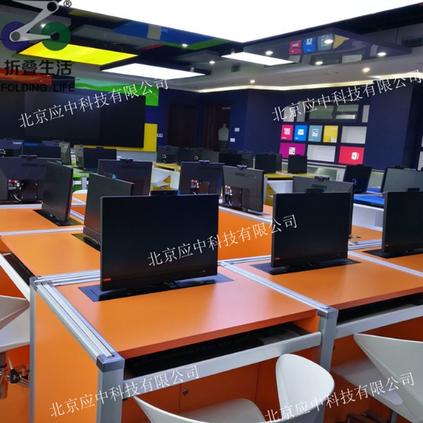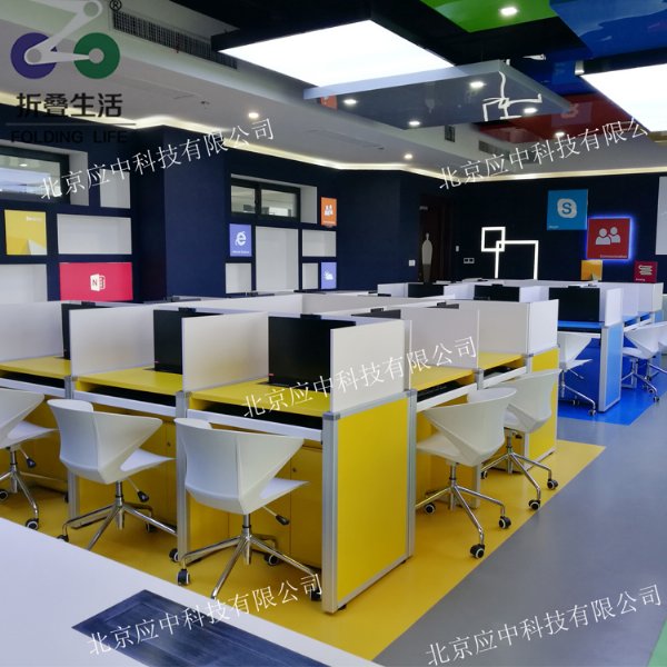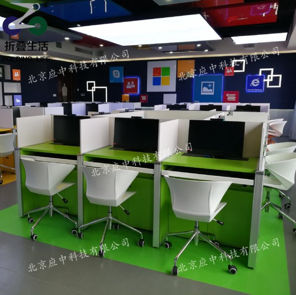 英语听说标准化考场电脑桌是现代英语教学考试和标准化考场的必需产品,采用这种桌子,可降低语音机考考场噪音5db以上;减少考场环境对考生注意力的干扰;严肃考场纪律,在考试的时候屏风升起,不需要屏风的时候降落,实现了一桌多用。