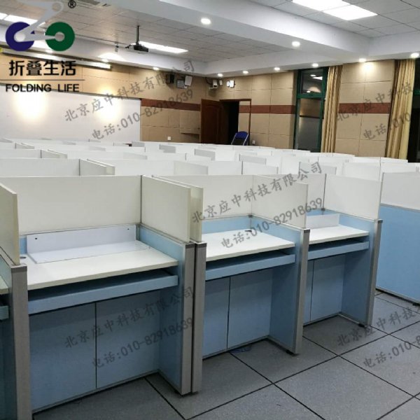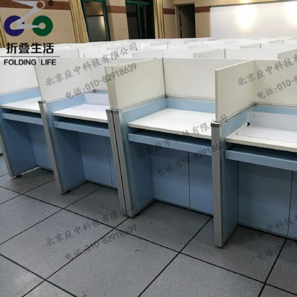 语音听说测试考场电脑桌行业里面称之为升降屏风电脑桌,屏风升起来同桌或者友邻之间看不到,保证了考试的公平性,因此应用范围广泛应用于校用考试*桌,在考试的时候屏风升起,不需要的时候屏风降落,实现了一桌多用,屏风的吸音效果更保证了考试的准确性和公平性,可达到互不干扰的作用。
