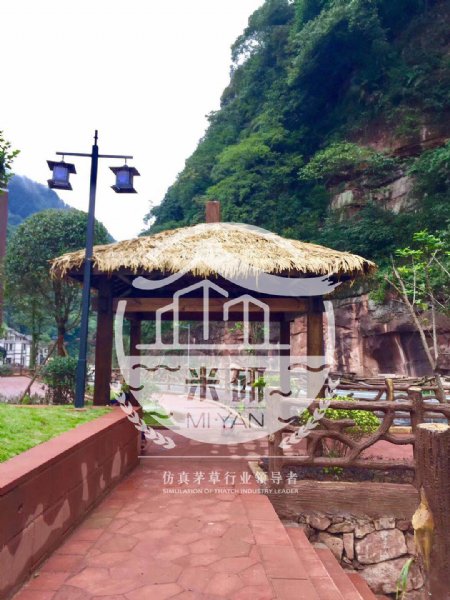 仿真茅草它色泽美观高雅,轻质,不生锈,不腐烂,不破裂,不生虫,耐用,防雨,便于安装,是仿天然茅草房屋最理..