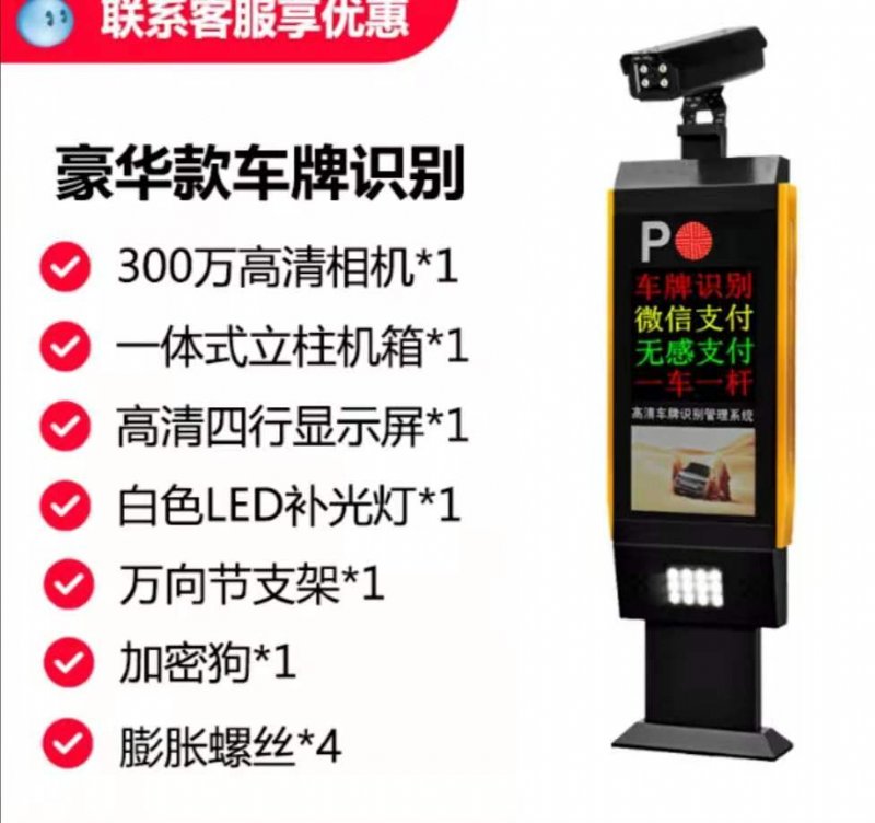 四行三色显示,车牌号码,停车时间,收费金额以及广告信息等(内容