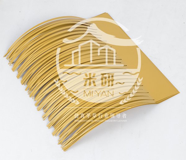 仿真茅草它色泽美观高雅,轻质,不生锈,不腐烂,不破裂,不生虫,耐用,防雨,便于安装,是仿天然茅草房屋最理..