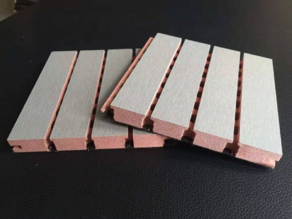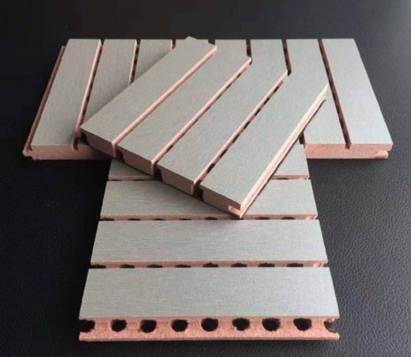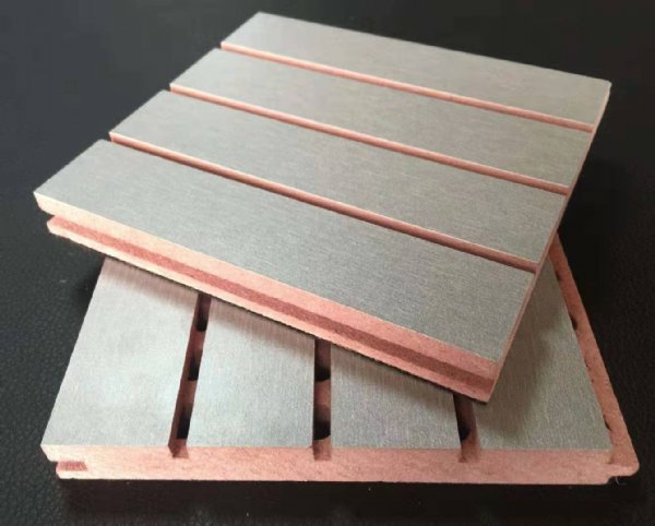 木质吸音板是一种在密度板的正面开槽、背面穿孔的狭缝共振吸音材料、槽木吸音板对吸声频谱选择性很强,对中低频有很好的牺牲性能。若在吸声结构后空腔适量吸音棉可提高中、高频吸声效果,标准化模块设计,采用插槽、龙骨结构,安装简易,常用于墙面或天花装饰。吸音板适用于庭影院、影剧院、录音室、录音棚、播音室、试音室、商务办公厅、电视台、电台、多功能厅、会议室、演播厅、音乐厅、钢琴房、大礼堂、体育馆等对音质要求较高的场所。
