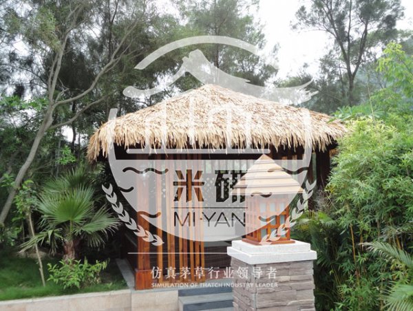 仿真茅草它色泽美观高雅,轻质,不生锈,不腐烂,不破裂,不生虫,耐用,防雨,便于安装,是仿天然茅草房屋最理..