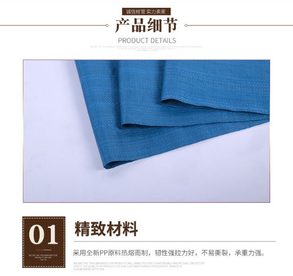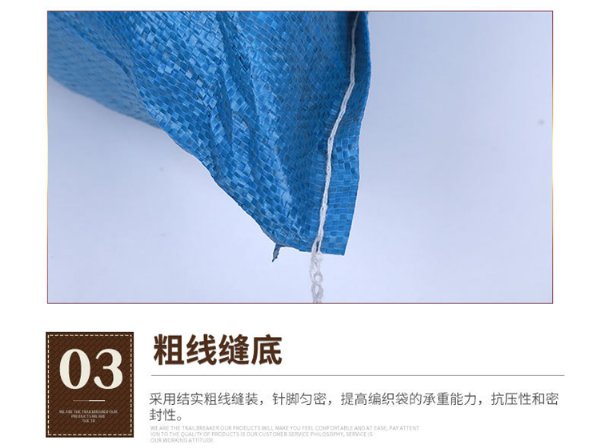 特点:增强编织袋拉力,既保证编织袋的硬度,又能得到稳定的拉力,编织袋质轻结实,具有防潮、防霉、堆放方便、不易滑落、不易破损。