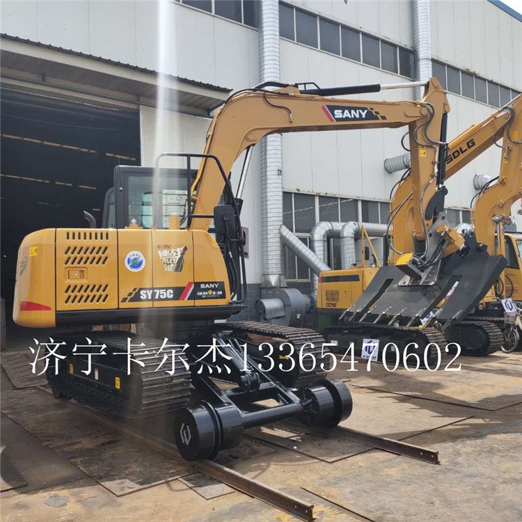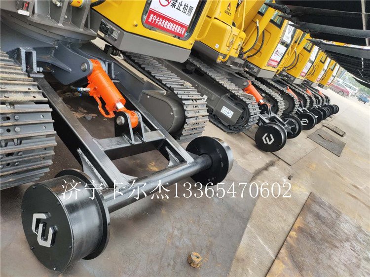 路轨距,改装后可在轨道上运行作业的轮胎挖掘机。