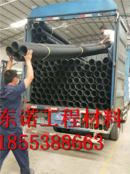 2、由于是立体结构,其空隙率为80-95%,构成空间与管理同且轻便,抗压性能比管结构的树脂强10倍以上,因此,即使因超负荷被压,但由于是立体结构,故残余空隙也达50%以上,不存在不通水的问题,无需考虑会被土压力压坏。