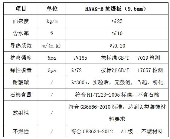 HAWK-B抗爆板是一种高强度复合的抗爆材料,芯层为非石棉硅酸盐防火板,覆层为两块高强冲孔镀锌钢板,内外层通过机械压力咬合而成。具有超强防火、防爆、抗撞击能力、抵抗高水压喷射等功能。