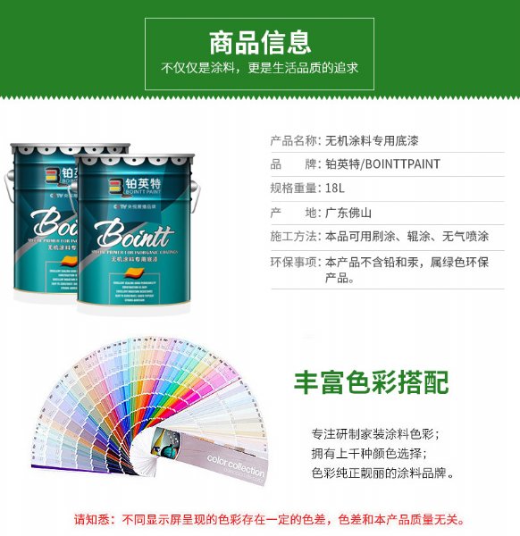 铂英特无机涂料*底漆采用液态硅酸钾、活性纳米高分子及高科技改性技术精制而成,不含防腐剂,防霉剂,确保产品不含VOC、不含甲醛,是绿色无机、天然健康的家居优选产品,是国内天然、环保、绿色、健康无机涂料的开路先逄!