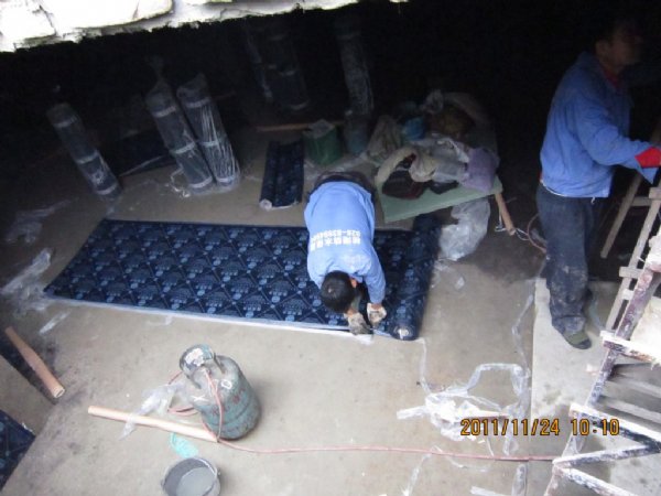 ③柔性防水层依随混凝土缺陷而穿孔破坏。这是由于下沉不均结构较大的开裂带动了柔性防水层的破坏;其次是当外防内贴法施工的底板混凝土有较大的外空洞,此时人们不知也不能修补混凝土。产生防水层背附的损失,在水压力作用下,小局部防水层被击穿。
