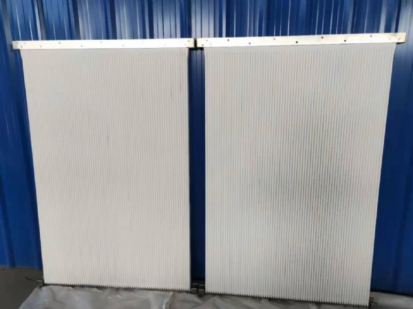 塑烧板是塑烧板除尘器的主要元件,它在塑烧板除尘器中,执行气-固分离和液-固分离的任务。T型塑烧板为垂直安装塑烧板。垂直安装塑烧板具有安装维修方便,过滤面积大,除尘能力强等优点,适合于粉尘浓度较高的烟气处理;典型的型号为:DXHB1500/9型,其尺寸规格为:565(长)×1500(高)×80(厚),单板过滤面积为4.5㎡,DXHB1500/18型,尺寸规格为:1050(长)×1560(高)×62(厚),单板过滤面积为9㎡,常用的塑烧板耐温能力为:70℃(常温)、110℃和160℃;在一般情况下,入口粉尘浓度可以达到500g/m3,排气含尘浓度可控制在5mg/m3以下。在高浓度除尘系统中,除尘效率达99.999%。广泛应用于轧钢、冶金、化工、烟气、制药、电子、食品、焊接加工、贵重金属回收等行业。